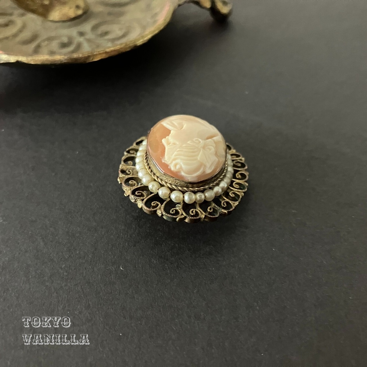 このブローチは、職人がひとつひとつ手作業で作り上げた逸品です。カメオの絵柄は、職人の芸術的な技術と繊細さが反映されています。