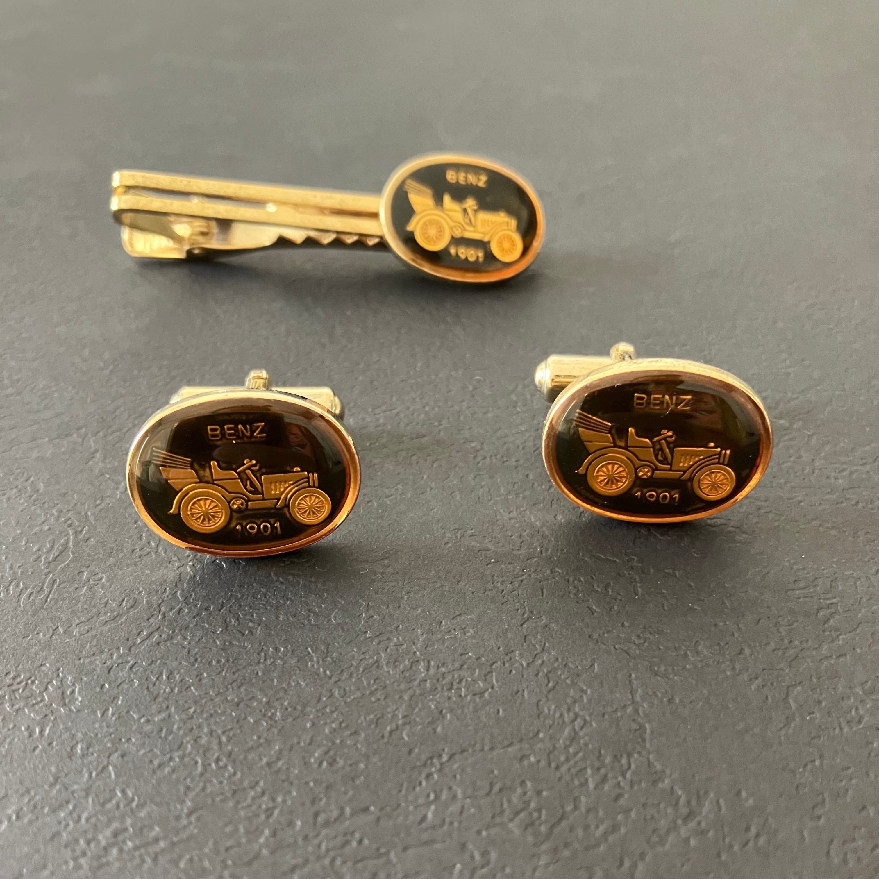 BENZ 1901 カフスネクタイピンセットは、ベンツのアンティークカフスとネクタイピンの豪華なセットです。シンプルでスタイリッシュなデザインは、ビジネスシーンやフォーマルな場でも存在感を放ちます。